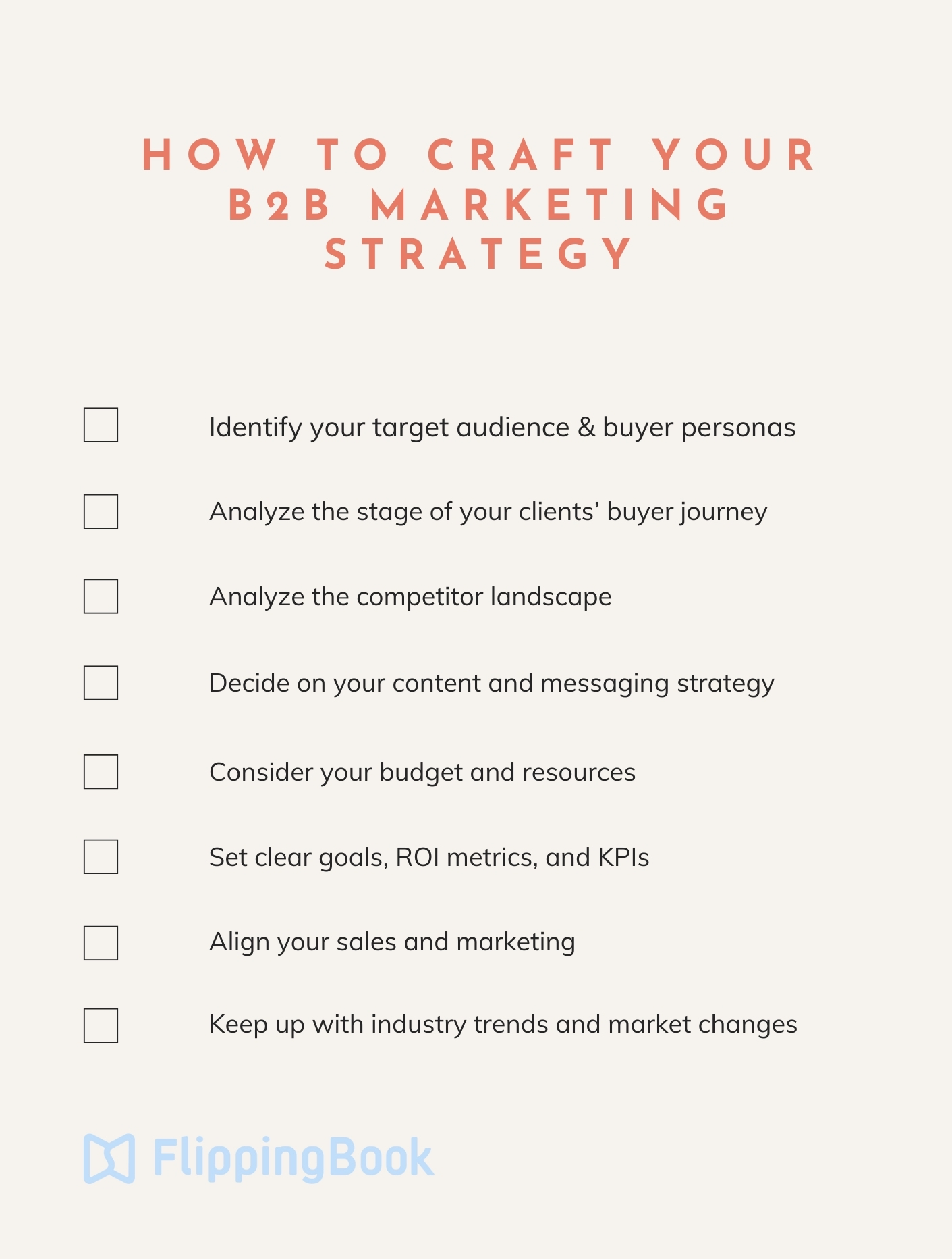 There are more creative marketing ideas out there than you could possibly try. Luckily, you don’t need to do that, you only need to analyze your business needs, resources, and limits to select a few most fitting methods. Here are some things to consider when planning your B2B marketing strategy: