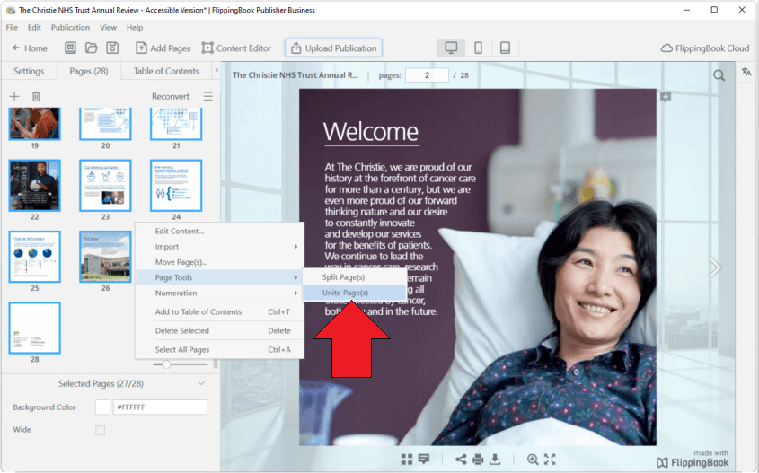 In such cases, you can consider uniting the single pages into two-page spreads. You can do that as follows: