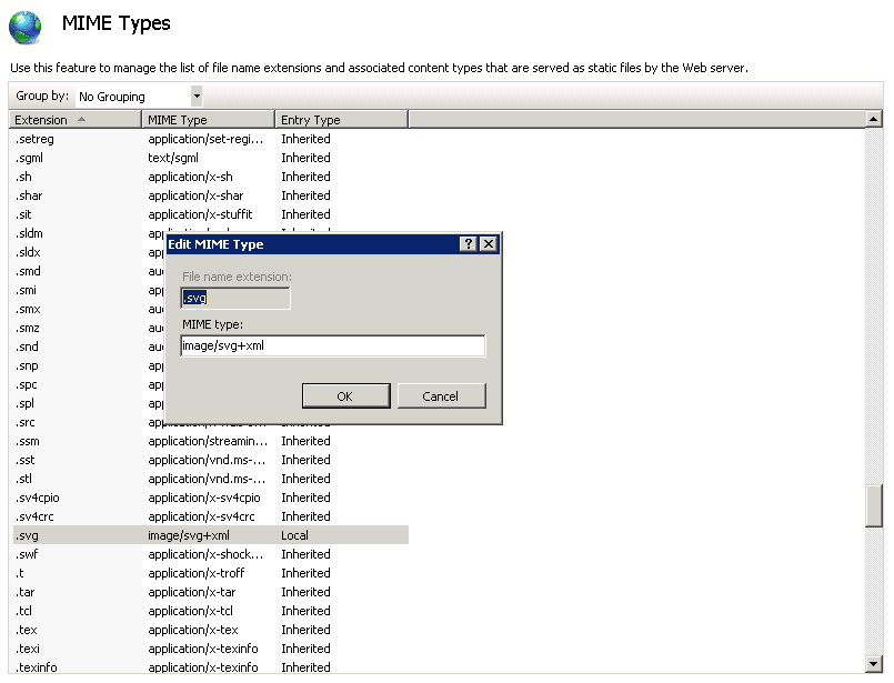 We have seen this issue almost exclusively on Microsoft Internet Information Server (IIS) webservers. Many versions of IIS are not set up to support SVG by default. An official article on Microsoft's TechNet describes how to add MIME types, but if you a few quick screenshots are probably all that a server admin needs: