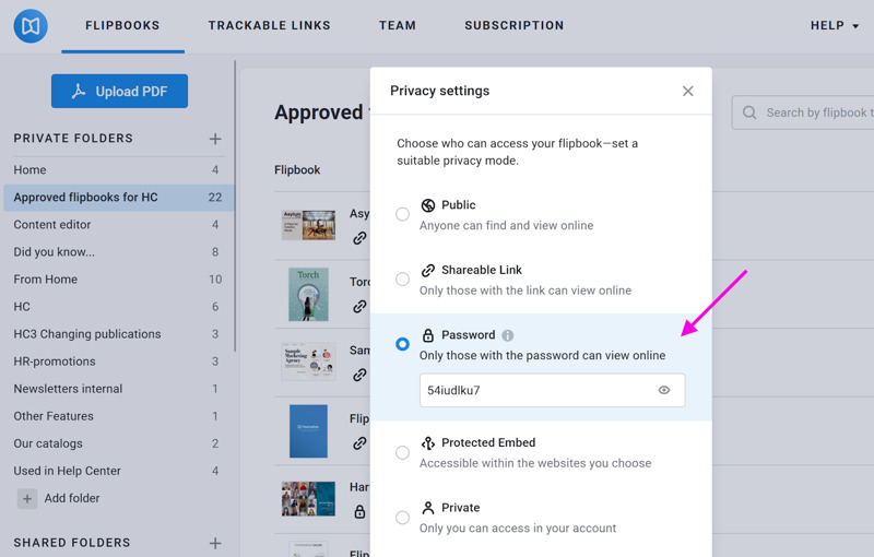 Tipš”If you make a flipbook password-protected, then also consider disabling the Print and Download options, and possibly even the option to select text!